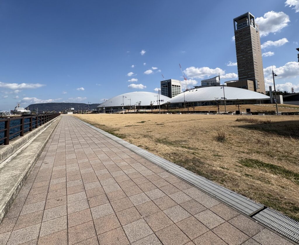 また、高松市内ではサンポート高松周辺にも立ち寄りました。ウォーターフロントエリアを実際に歩きながら、歩行者が回遊しやすい空間づくりなど、ウォーカブルなまちづくりの視点でも興味深く見て回ることができました。
